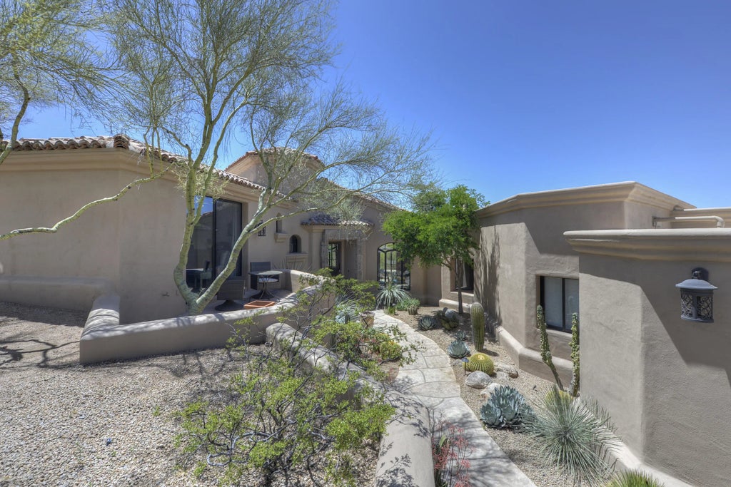 The absolute most peaceful and beautiful home to rejuvinate and enjoy Scottsdale. A Lash McDaniel home with stunning architectual elements and windows that frame a private sanctuary, natural open space, mountain views, and city lights. This welcoming home offers 3 bedrooms, and an office/den with a murphy bed. The cascading pool, built in BBQ, covered patio and open sitting areas make the backyard a place you won't want to leave. A newly constructed guest casita with bedroom, breakfast bar, bathroom, private entrance and private patio completes this oasis. Homes in Desert Mountain are available to rent on a short term basis (30 days or less) to eligible renters only. Eligible renters are defined as current property owners in Desert Mountain or current Club members of Desert Mountain Club, Inc. Any person who is not a current owner of property in Desert Mountain or a member of Desert Mountain Club, Inc. may only rent for 30 days or more.