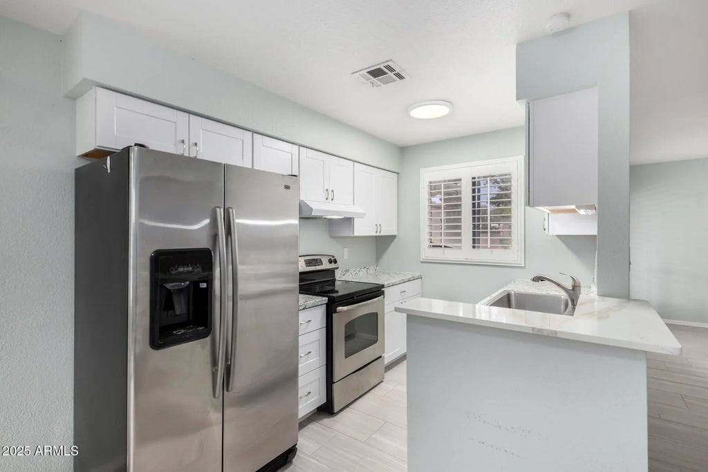 Discover this beautifully renovated 2-bedroom, 2-bath condominium in the desirable Colonia Coronita community of Chandler! Featuring newer roof and AC (2023)! With over 1,000 sq.ft. of thoughtfully designed living space, this home combines style and comfort with upgrades throughout—crisp plantation shutters, stylish white cabinetry, custom quartz bar top, new plank tile flooring, updated bathrooms and fresh paint. The bright, open living area flows seamlessly into the modern kitchen featuring stainless steel appliances, while the convenience of interior laundry and included washer/dryer makes moving in a breeze. Enjoy two private patios for relaxing or entertaining, plus community amenities including a sparkling pool. Brick construction offers efficiency, while the HOA covers water, exterior, roof, and landscaping for low-maintenance living. Conveniently located between the 101 and 202 freeways, and just minutes from schools, parks, SanTan Village mall, and downtown Chandler & Gilbert, this move-in ready home truly has it all!